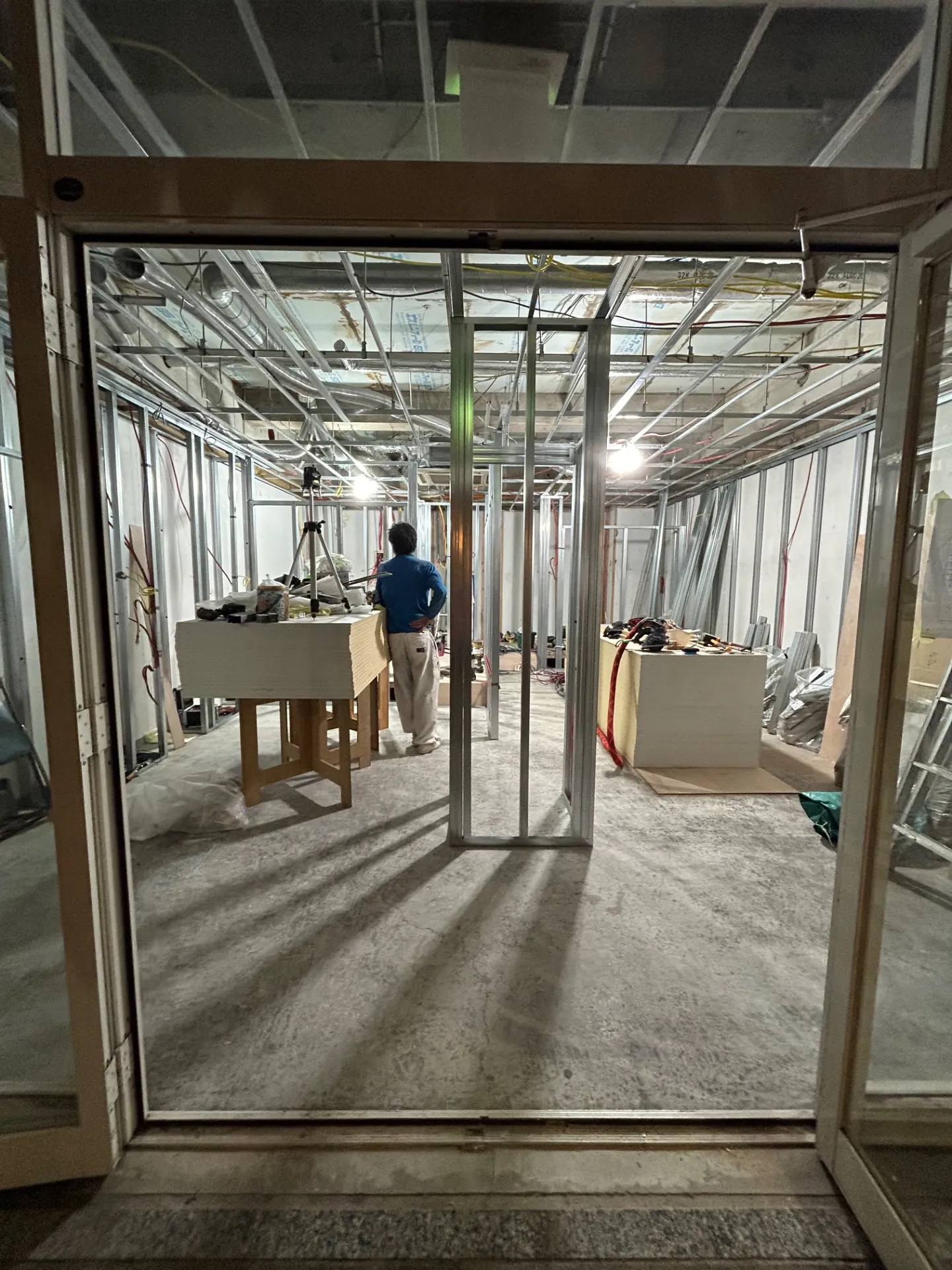 その後、床に少し高さを出しつつ、施術時の邪魔にならないように動線も確認しつつ施工を進めていきました。
